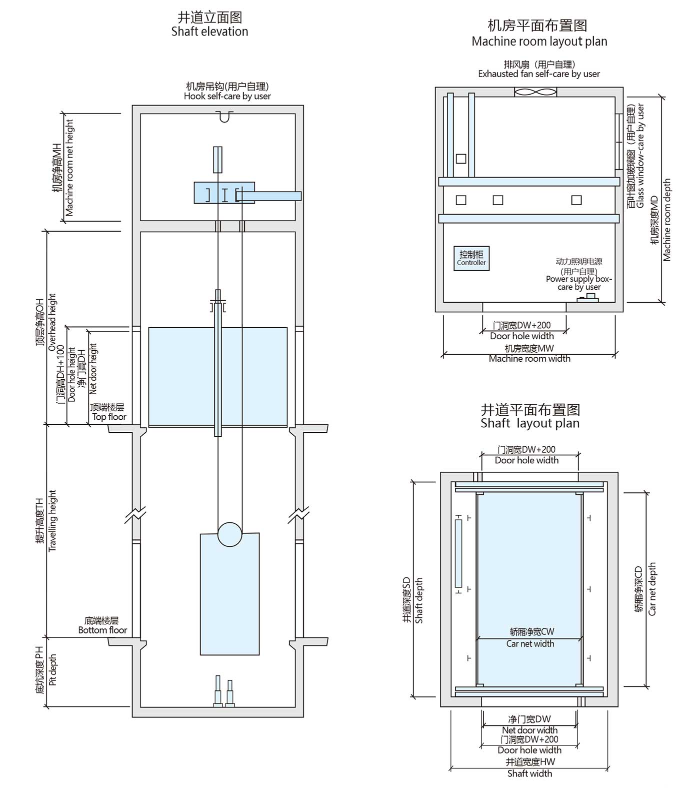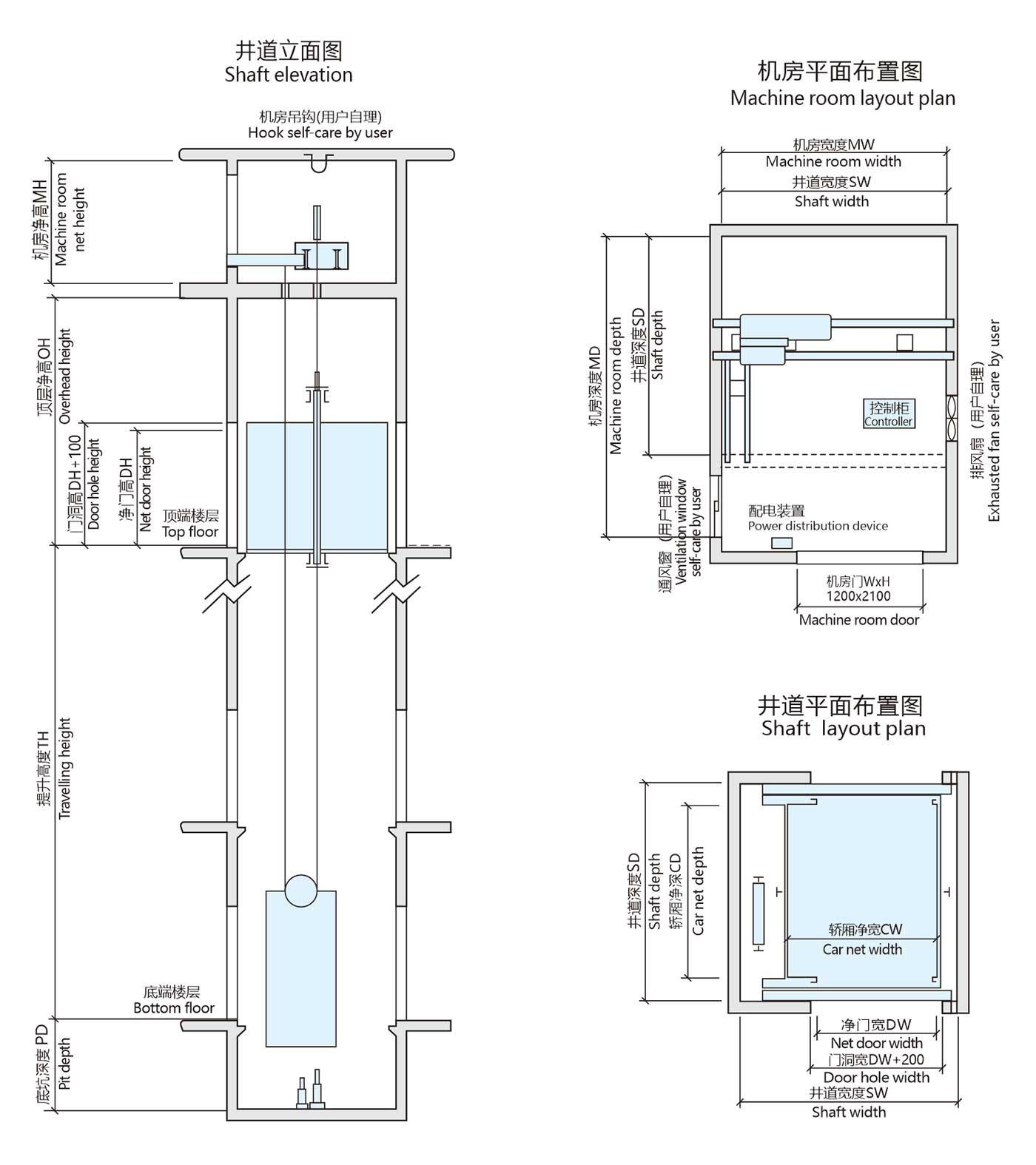 機(jī)房尺寸(mm) Machine room size |