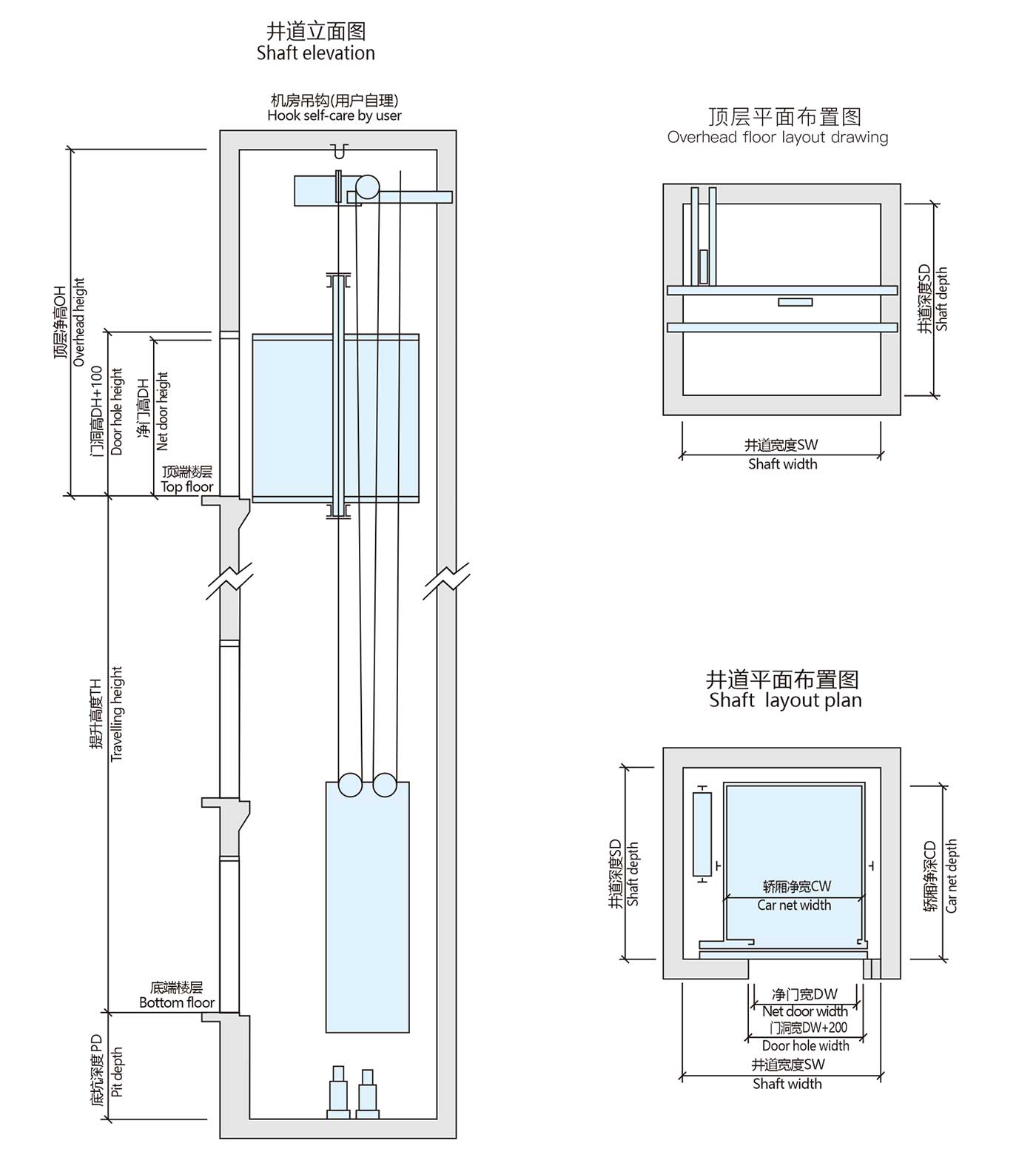 井道凈尺寸(mm) Hoistway size |